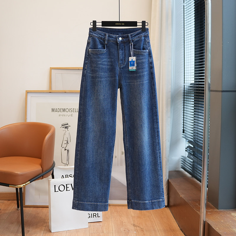 虫小小 四面弹磨绒高腰宽松显瘦直筒牛仔裤女休闲阔腿裤秋冬927H
