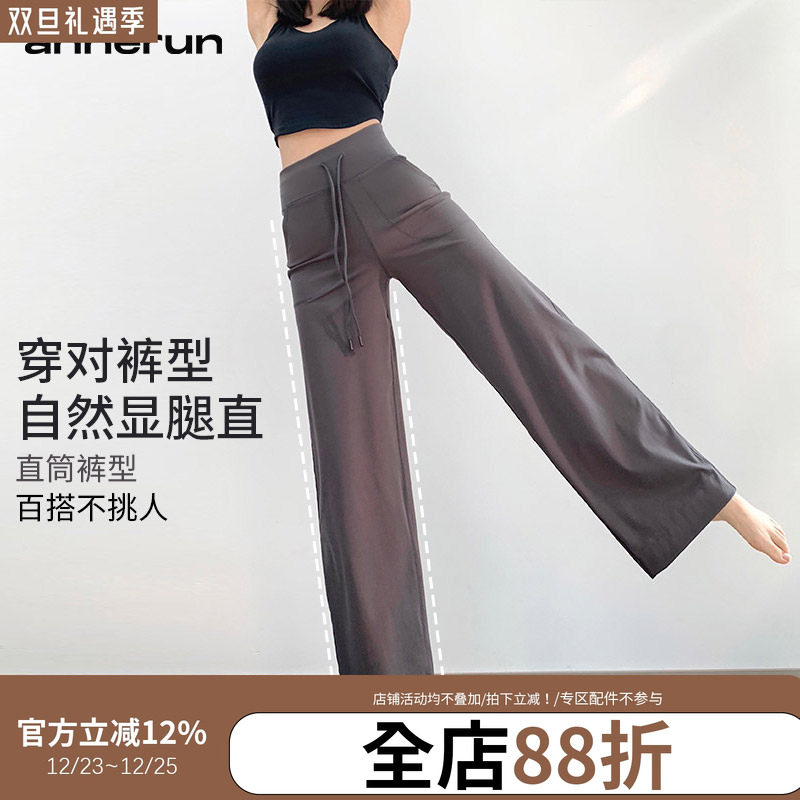 高腰弹力阔腿裤宽松直筒拖地瑜伽健身裤女休闲运动长裤2025新款