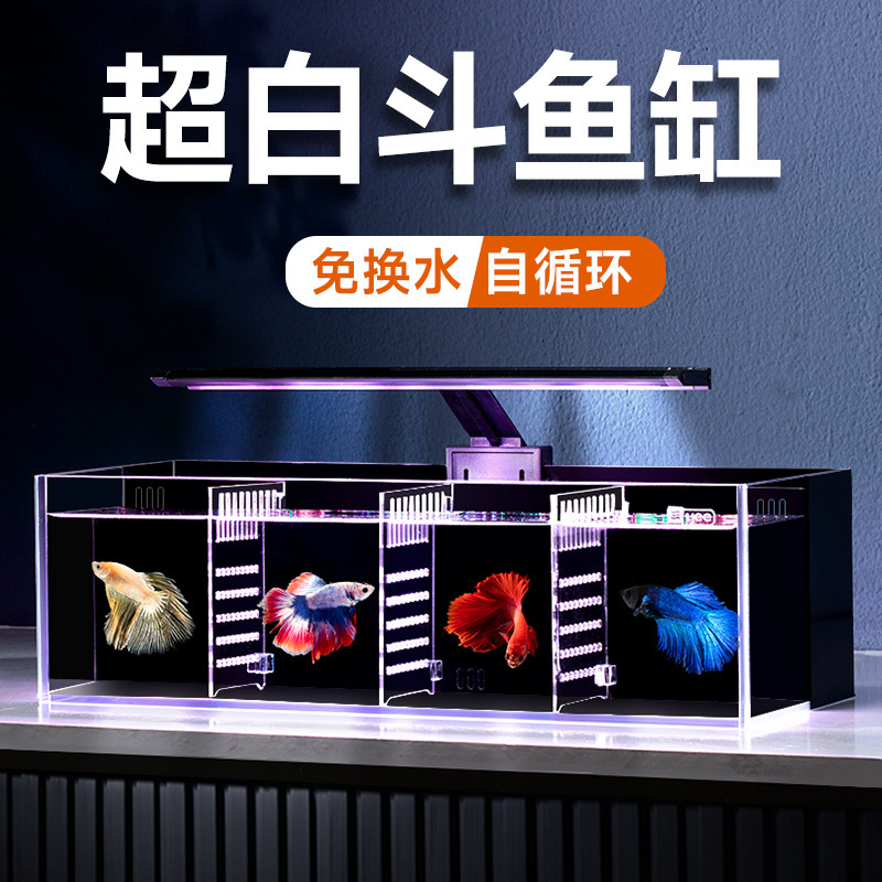 yee斗鱼缸超白玻璃高级多格带隔板过滤金鱼缸灯桌面小型造景摆件