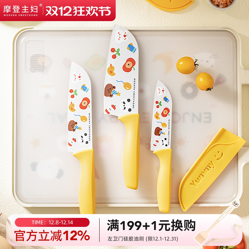 摩登主妇熊猫水果刀家用婴儿宝宝辅食刀切菜刀专用刀具套装陶瓷刀