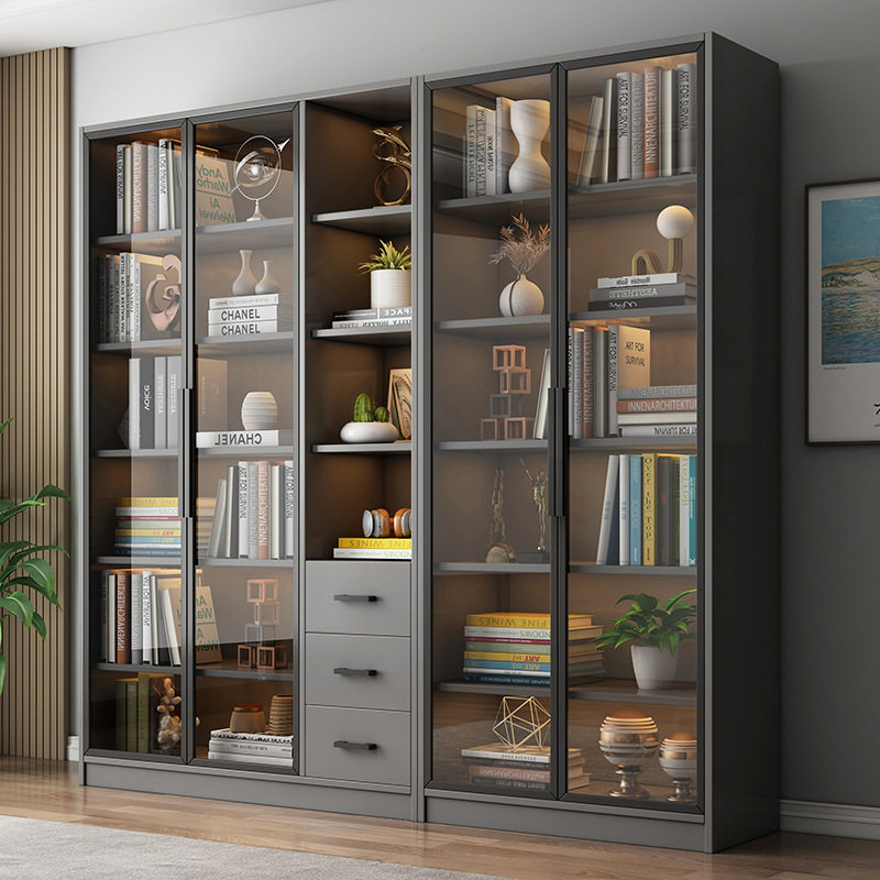 书柜家用轻奢推拉门书橱实木自由组合书架定制客厅带玻璃门展示柜