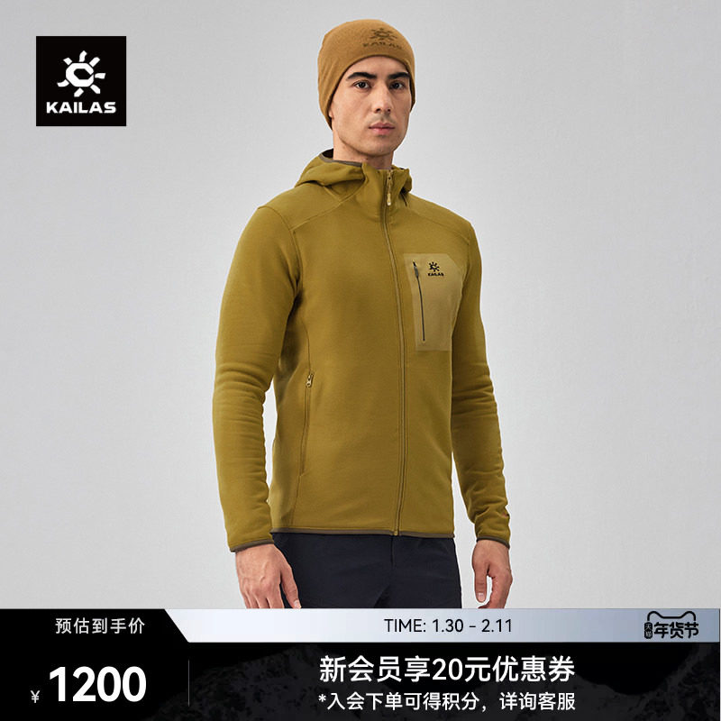 KAILAS凯乐石冷杉连帽抓绒衣外套吸湿排汗弹力户外登山徒步攀冰男