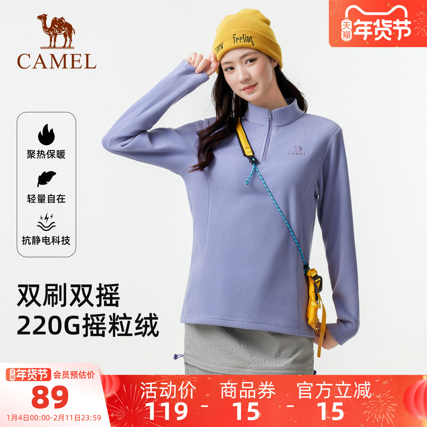 骆驼户外抓绒衣女半拉链立领抓绒衣男抗静电保暖摇粒绒抓绒衣外套