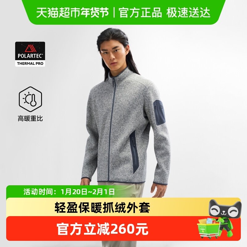 【轻量化/3D立裁+方格绒】春季男户外立领休闲开衫运动抓绒衣外套