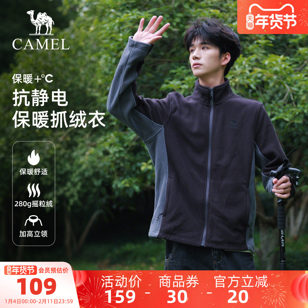 骆驼户外抓绒衣外套男秋冬双面摇粒绒立领防风抗静电冲锋衣内胆女