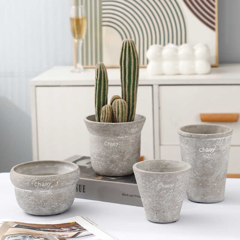简约复古水泥花盆ins田园高颜值北欧风多肉植物摆件装饰个性新款