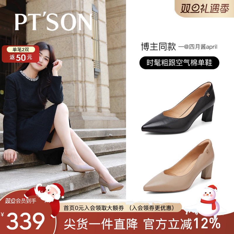 蜘蛛王女鞋官方旗舰店正品2025秋夏新款单鞋浅口真皮粗跟工作鞋