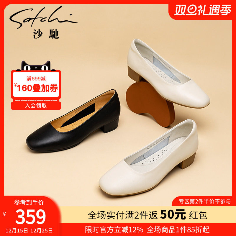 沙驰女鞋低跟职业单鞋2025年秋季新款方头浅口通勤鞋女粗跟工作鞋