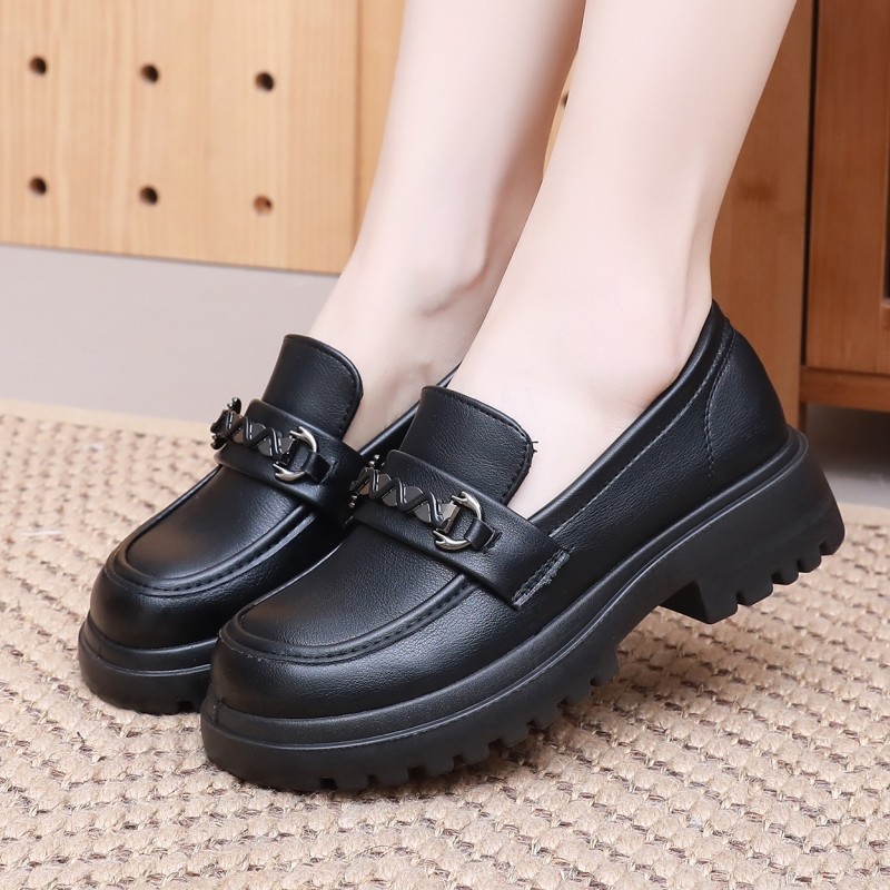 厚底增高乐福鞋女款英伦风单鞋防滑黑色小皮鞋春秋百搭粗跟工作鞋