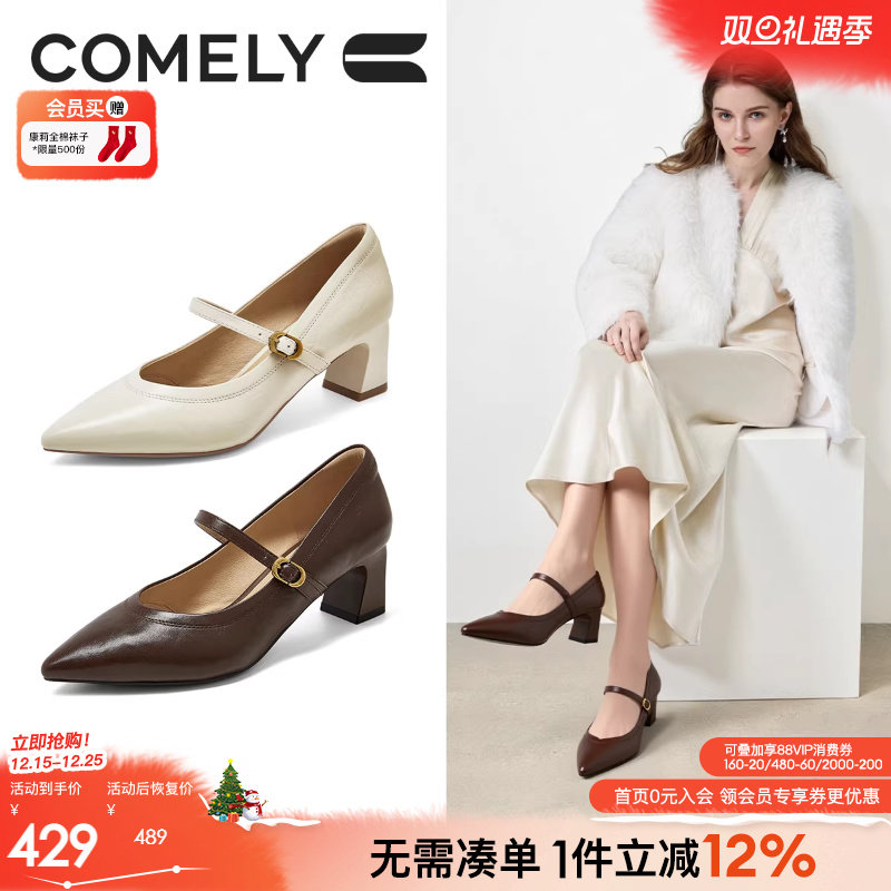 康莉羊皮高跟鞋玛丽珍女25年春秋新款职业通勤时尚百搭粗跟工作鞋