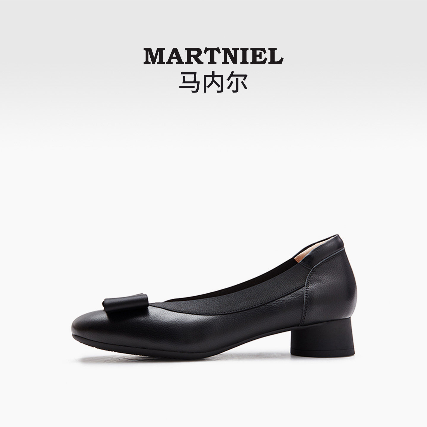 马内尔真皮气质单鞋女一脚蹬小香风粗跟工作鞋浅口低跟软底小皮鞋