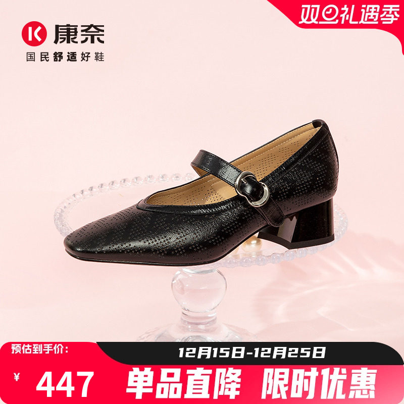 康奈女鞋2025夏季新款浅口玛丽珍方头粗跟工作鞋气质一字扣带单鞋