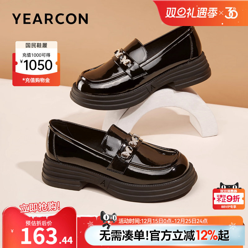 意尔康女鞋春秋季女士乐福鞋英伦风小皮鞋通勤休闲单鞋粗跟工作鞋