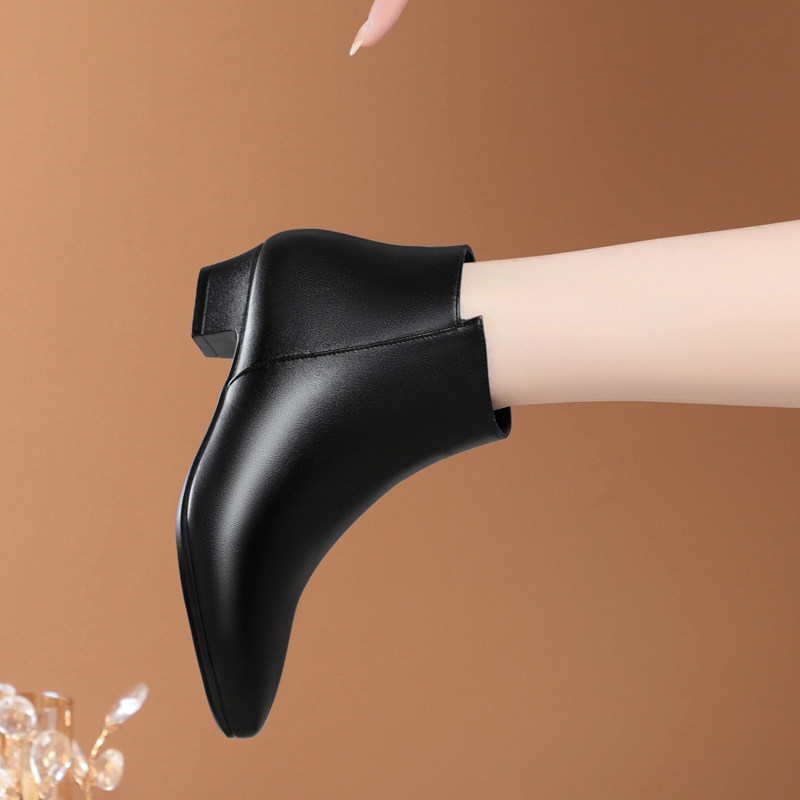 3cm软底加绒粗跟工作鞋黑色短靴女靴子单靴皮靴皮鞋女鞋棉鞋秋冬