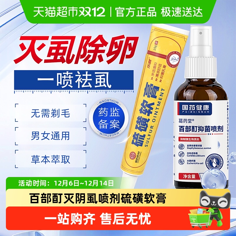 百部酊灭阴虱喷剂硫磺软膏去男私处喷剂专用虱子药虫卵双杀小女孩