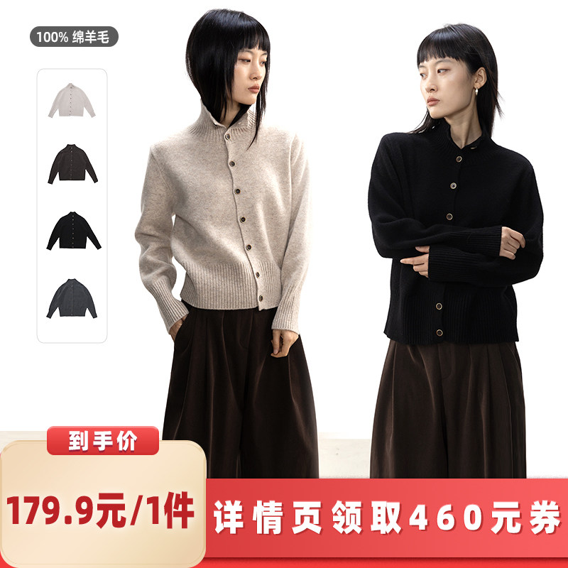 【所有女生的衣橱直播间】绒汀/定纺原纱 100%绵羊毛立领针织开衫