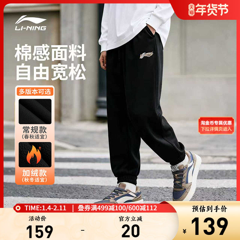 李宁运动裤男秋冬季新款卫裤青少年休闲长裤宽松大码加绒直筒裤子