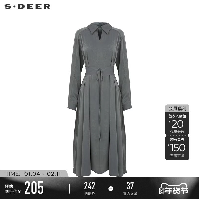 sdeer圣迪奥时尚翻领收腰衬衫雪纺连衣裙S233Z12D2