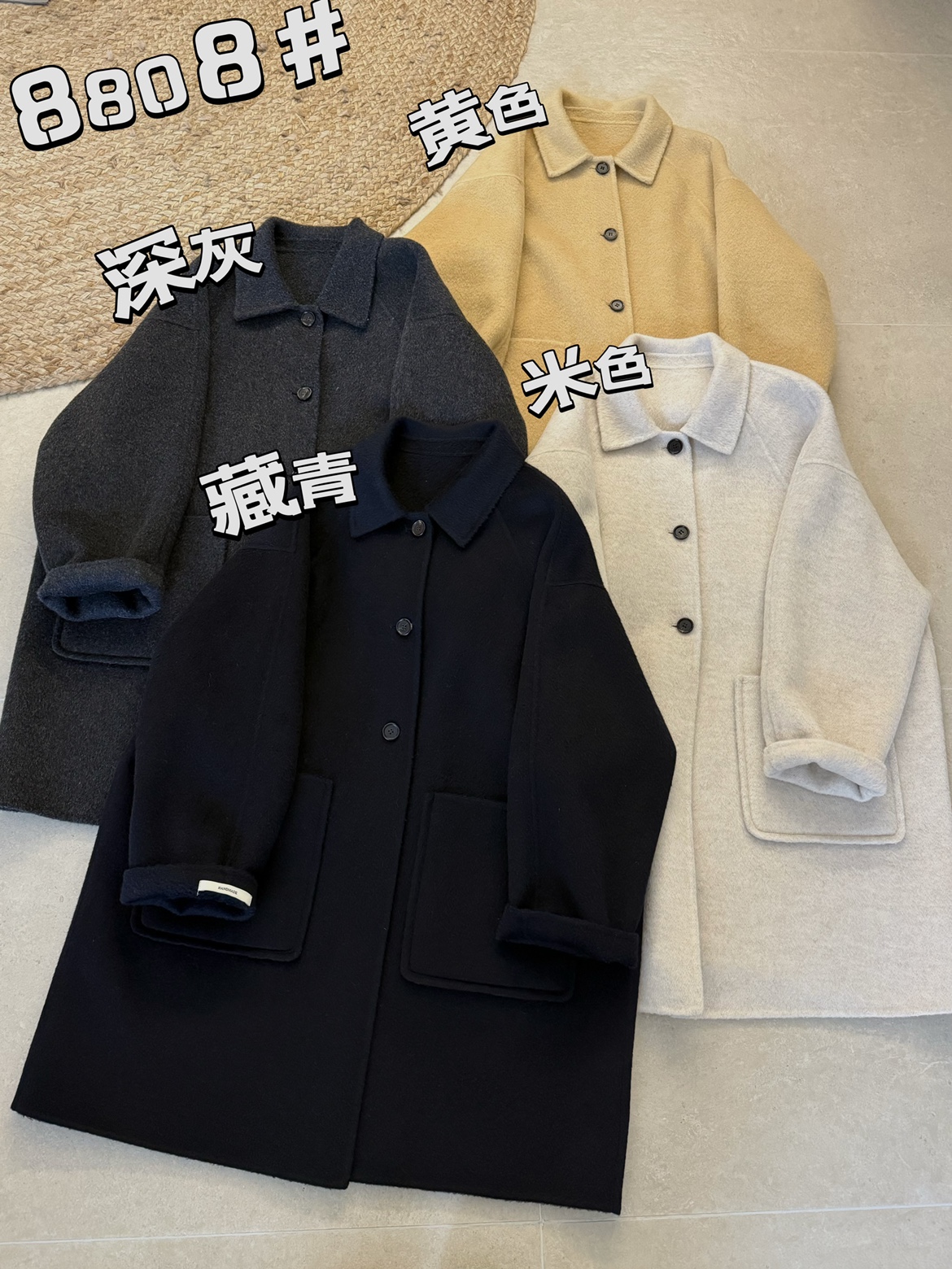 8808巴城高端全羊毛双面羊绒时尚百搭修身显瘦中长款双面开衫大衣