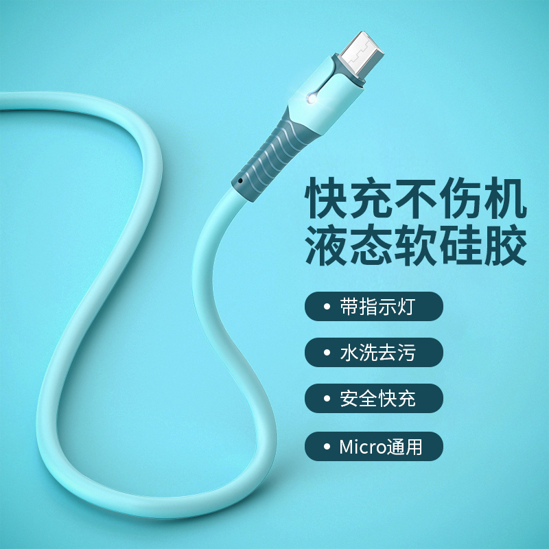 安卓手机数据线带灯适用华为vivo小米oppo快充3A梯形老款式micro通用液态硅胶usb接口充电线器加长2米多功能