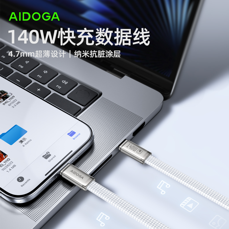 AIDOGA艾迪伽140w超薄充电线适用苹果小米华为安卓手机数据线ipad平板电脑双typec接口车载快充线防折断