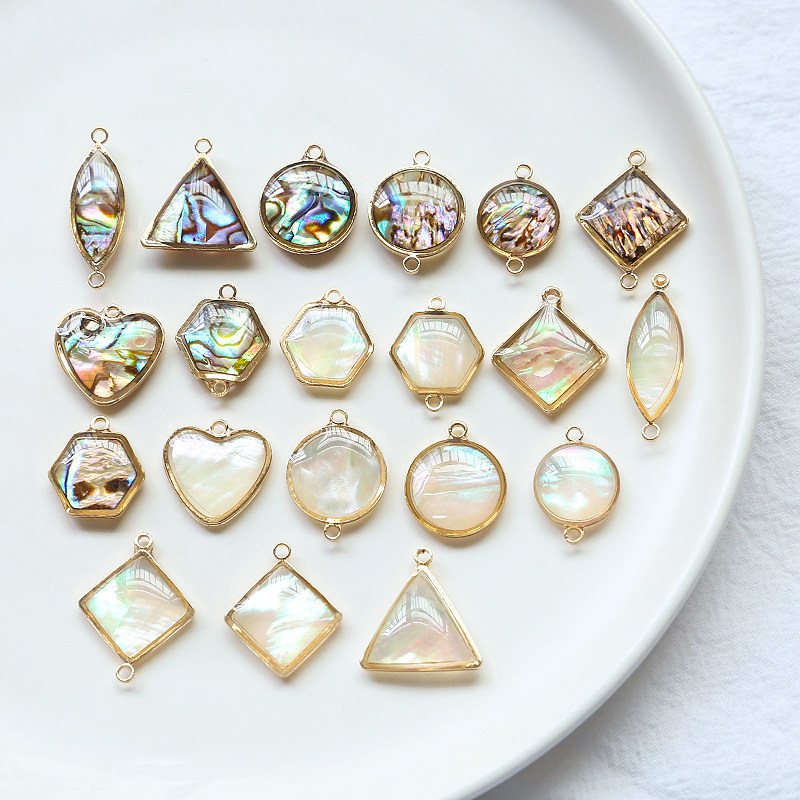 铜镀包金几何单双吊鲍鱼贝吊坠diy手工饰品耳环项链手链配件材料