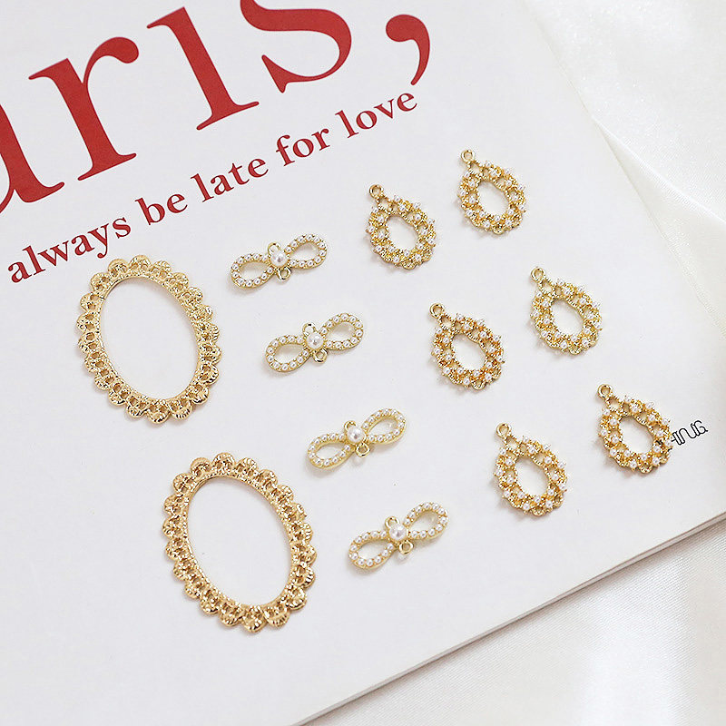 镂空椭圆合金双吊珍珠蝴蝶结diy手工耳饰品耳环项链手链配件材料