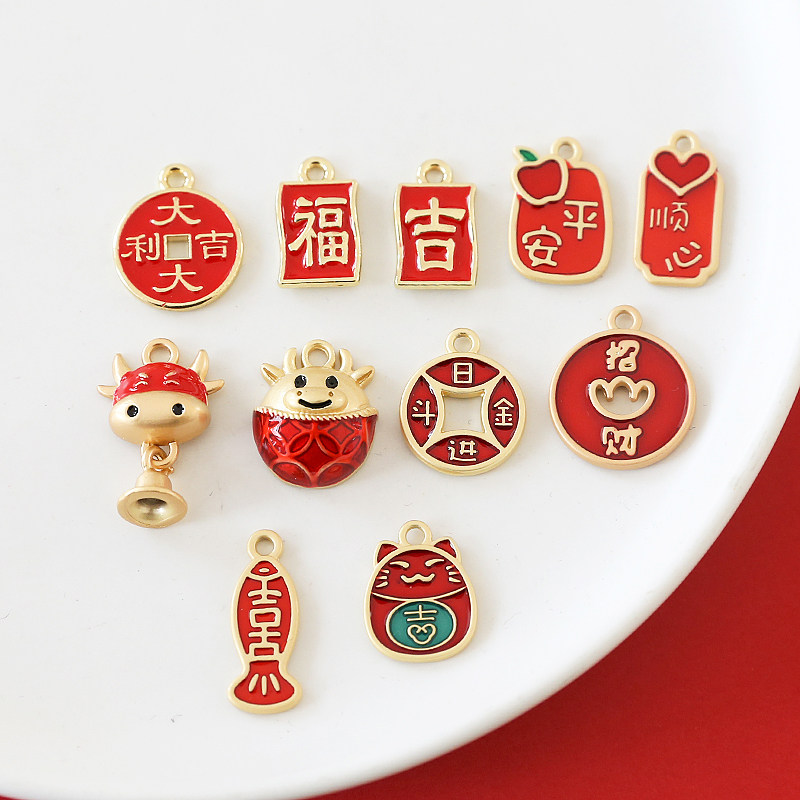 新年大吉大利红色招财事事顺心牛年diy手工饰品耳环手链配件材料
