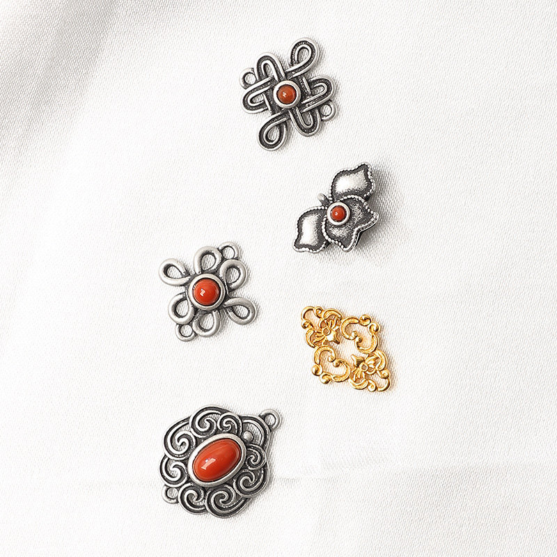 S925纯银中国结连接片镶南红编织红绳手链配件材料项链小饰品diy