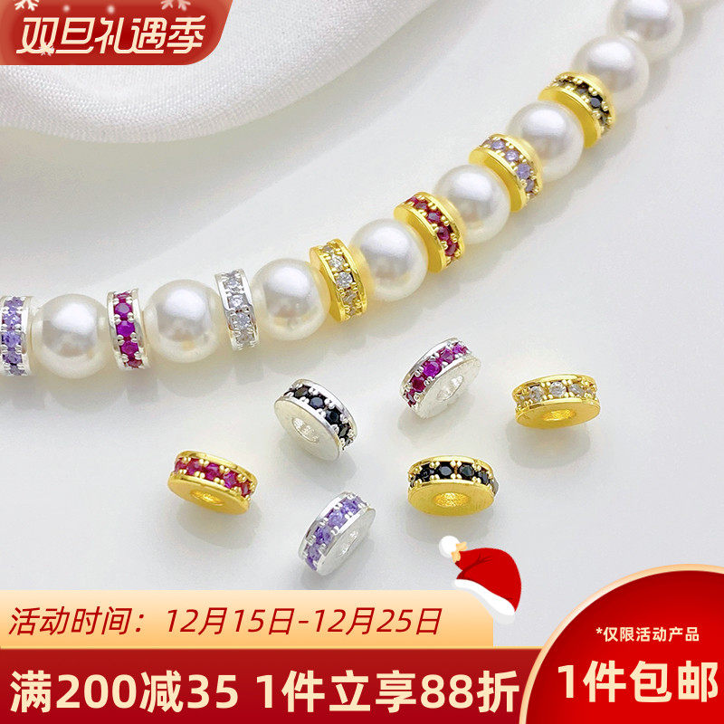 18K包金保色镶钳彩色锆石隔珠隔片垫片diy串珍珠水晶手链配件材料