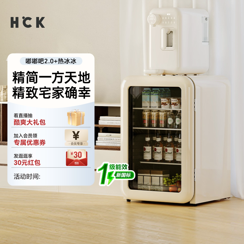 HCK哈士奇冰冷套装冰吧冷藏小冰箱家用客厅+热冰冰即热制冰饮水机