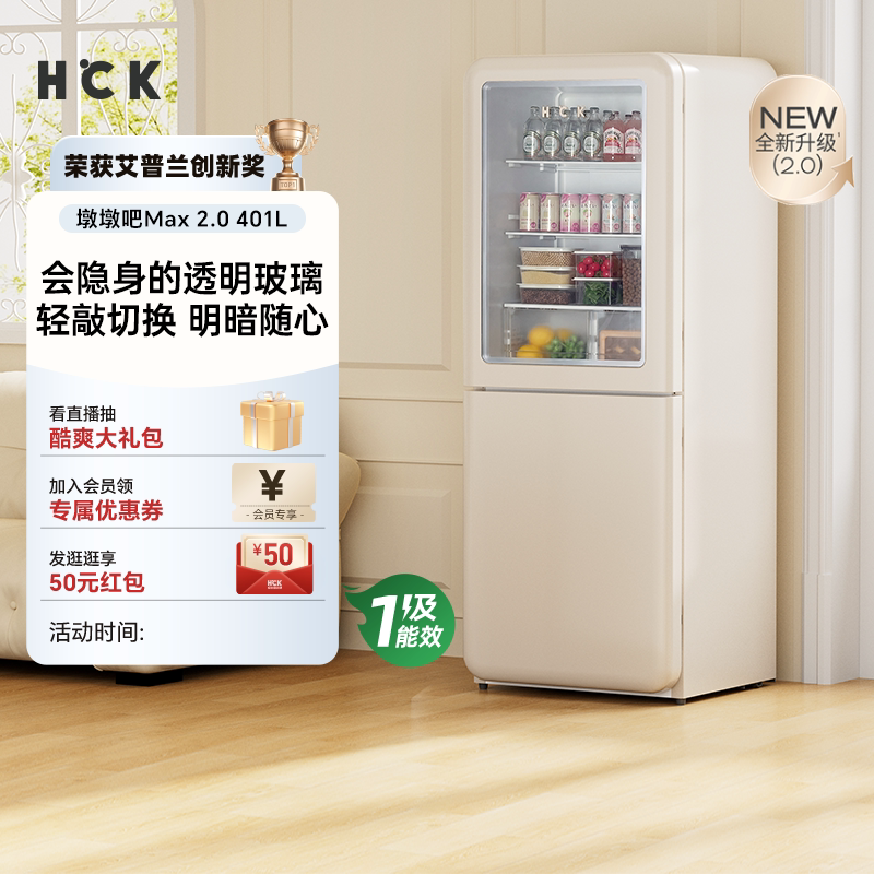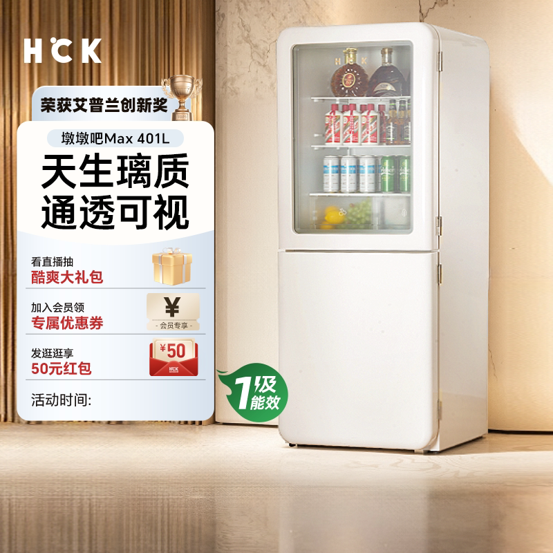 HCK哈士奇401L复古冰箱墩墩吧Max2.0深冷风冷敲一敲客厅家用冰吧