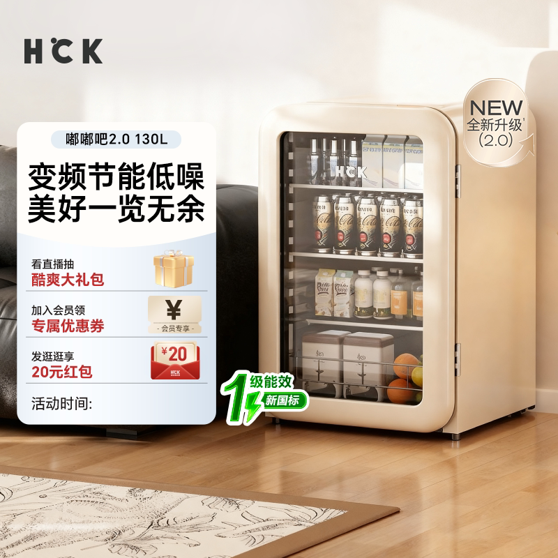 HCK哈士奇冰吧冷藏保鲜柜家用客厅小型饮料小冰箱办公室高颜值2.0