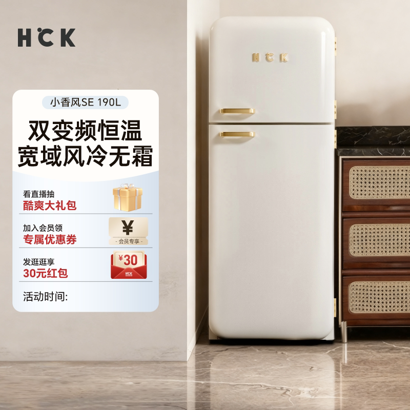 HCK哈士奇小香风SE复古冰箱双变频节能双门客厅无霜家用保鲜冷冻