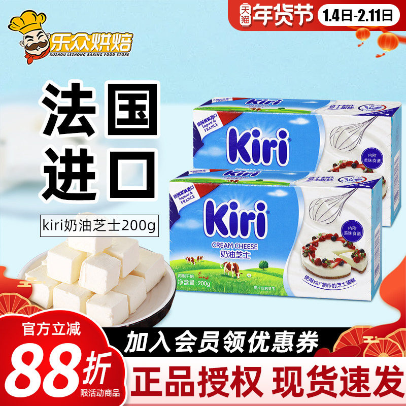 凯瑞kiri奶油奶酪200g*2法国原装芝士干酪家用面包蛋糕烘焙小包装