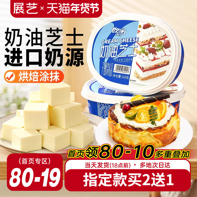 展艺欧澜奶油奶酪巴斯克蛋糕涂抹乳酪即食芝士块奶酪棒烘焙家专用
