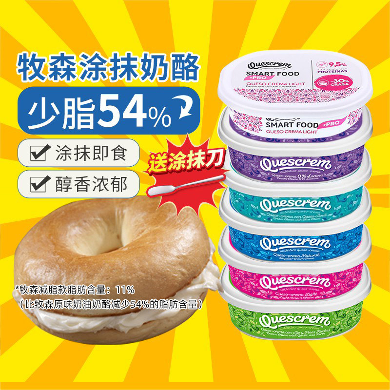 牧森奶油奶酪蓝纹风味即食涂抹面包奶油芝士蒜香味减少脂干酪200g