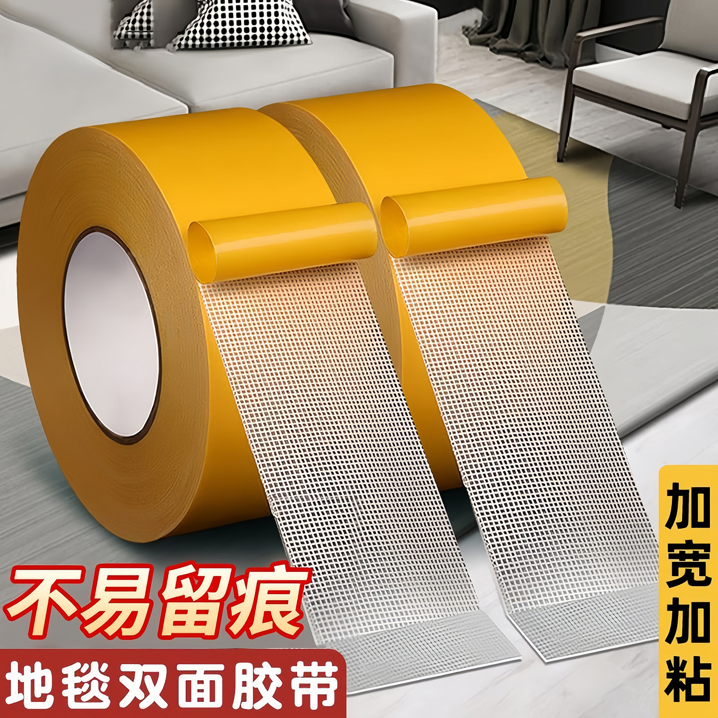 强粘力布基双面胶带高粘度编织布黄色透明网格地毯地板革拼接防水超粘不留痕墙面固定用耐高温气球墙纸双面胶