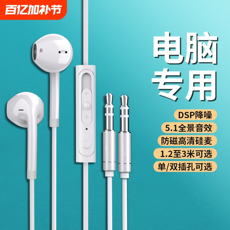 台式电脑耳机带麦克风有线入耳式电竞游戏专用双插头笔记本二合一