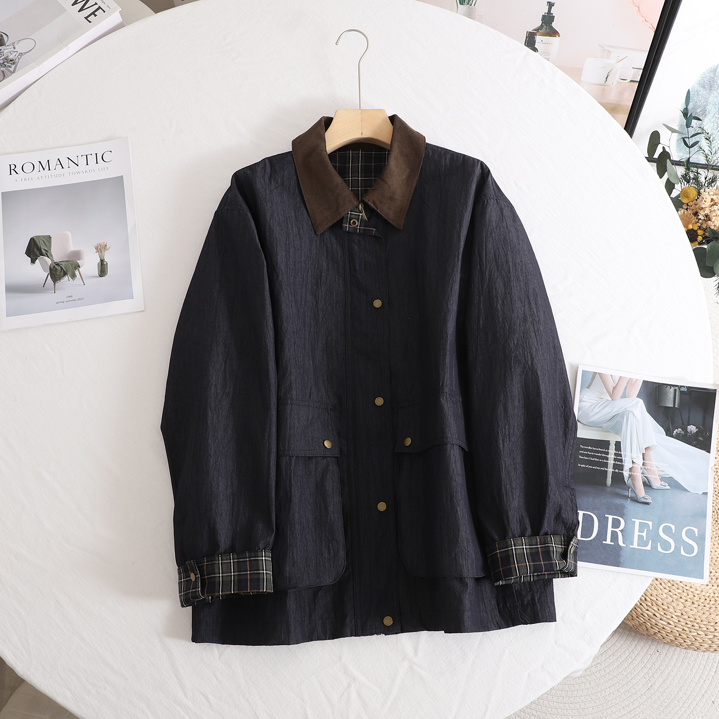 麦 韩系设计感复古撞色格纹拼接英伦风风衣女2025秋冬季外套上衣