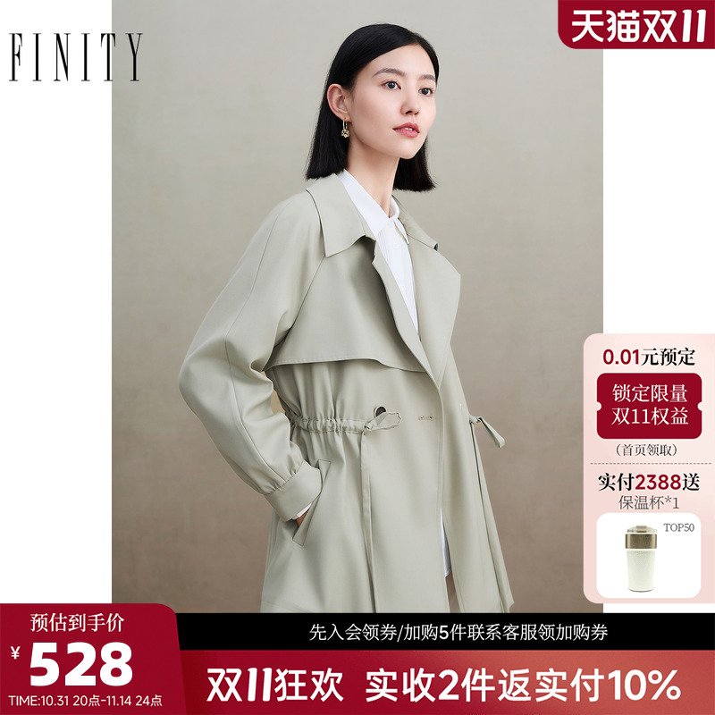 FINITY菲妮迪风衣女款新款秋季收腰复古英伦风风衣外套中长款