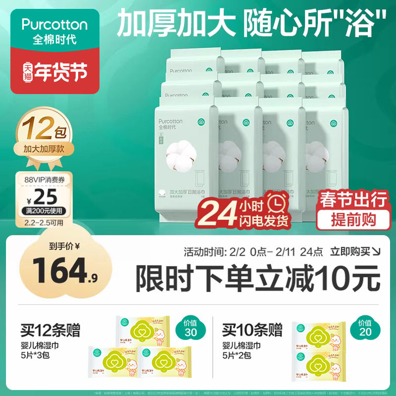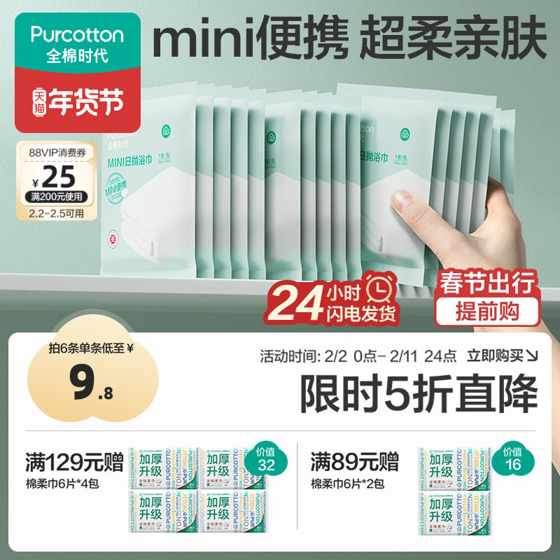 全棉时代一次性浴巾纯棉加大加厚单独包装压缩毛巾洗脸巾旅行用品