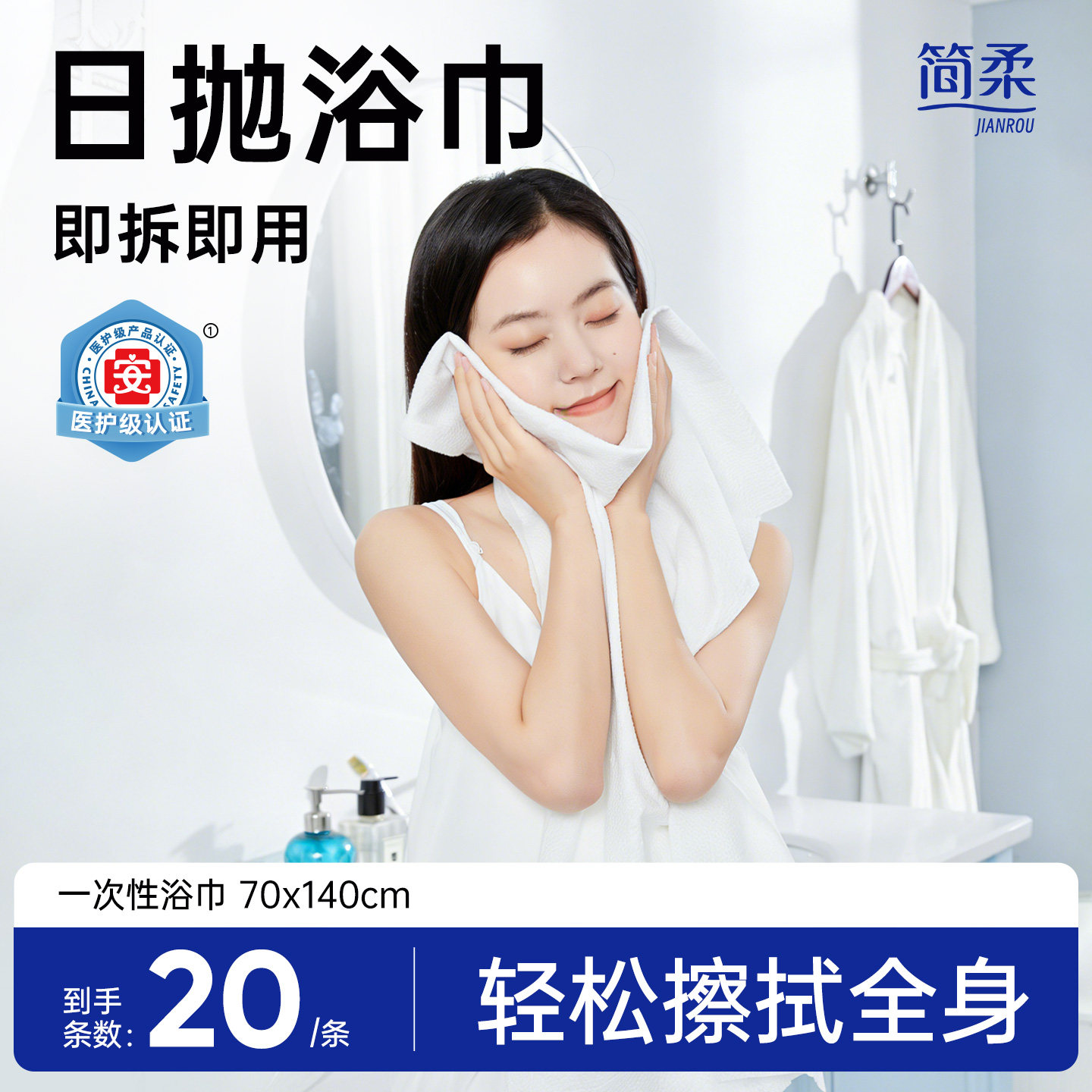 洁丽雅一次性全棉浴巾加大加厚柔软亲肤独立包装旅行酒店压缩毛巾