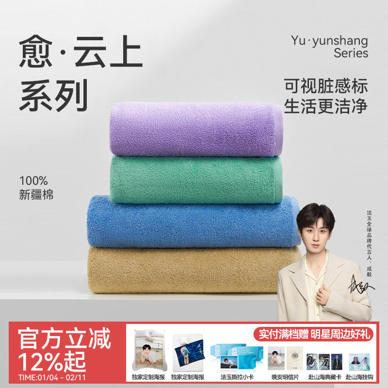 洁玉纯棉浴巾加大加厚全棉洗澡吸水柔软亲肤抗菌多巴胺按扣大裹巾