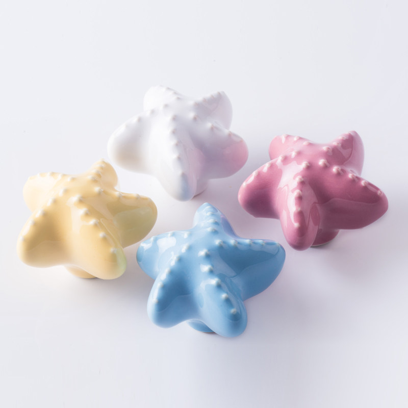 全陶卡通陶瓷艺术拉手 地中海海星白色橱柜衣柜门单孔儿童家具把
