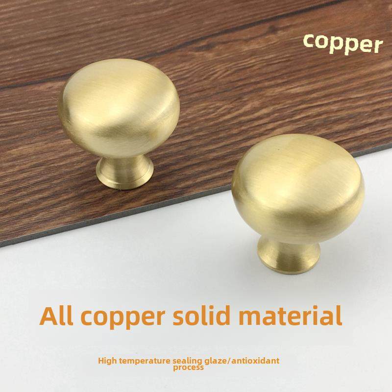 中欧式地中海纯黄铜拉手抽屉衣橱鞋柜门简约实心圆形单孔金色把手
