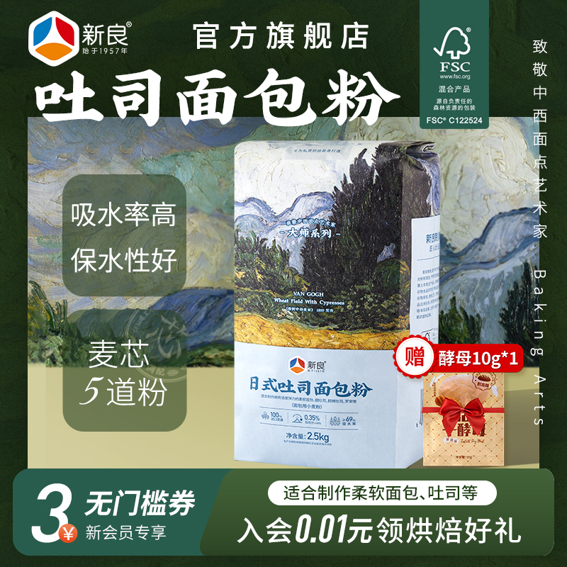 新良高筋面粉日式面包粉2.5kg烘焙原料高端家用吐司面粉进口麦源