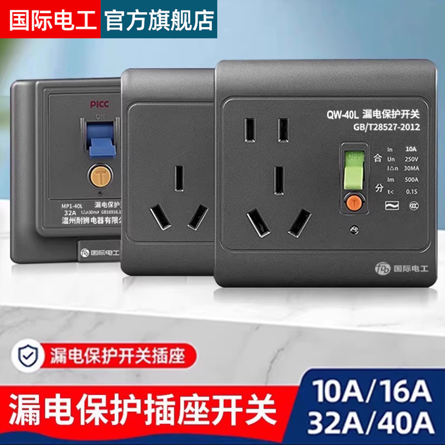 国际电工漏电保护插头16a空调10a热水器专用自动断电漏保开关插座