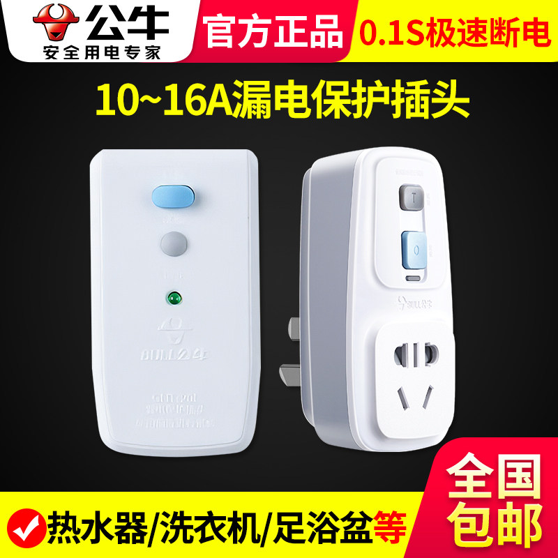公牛电热水器漏电保护器插头16a电源断电防漏电漏保插座专用通用
