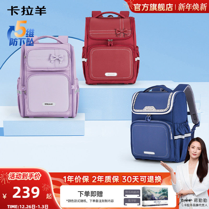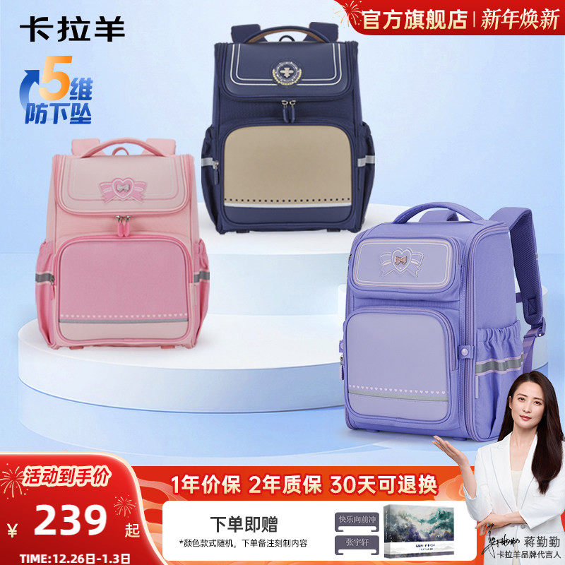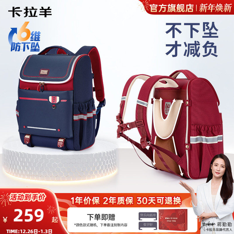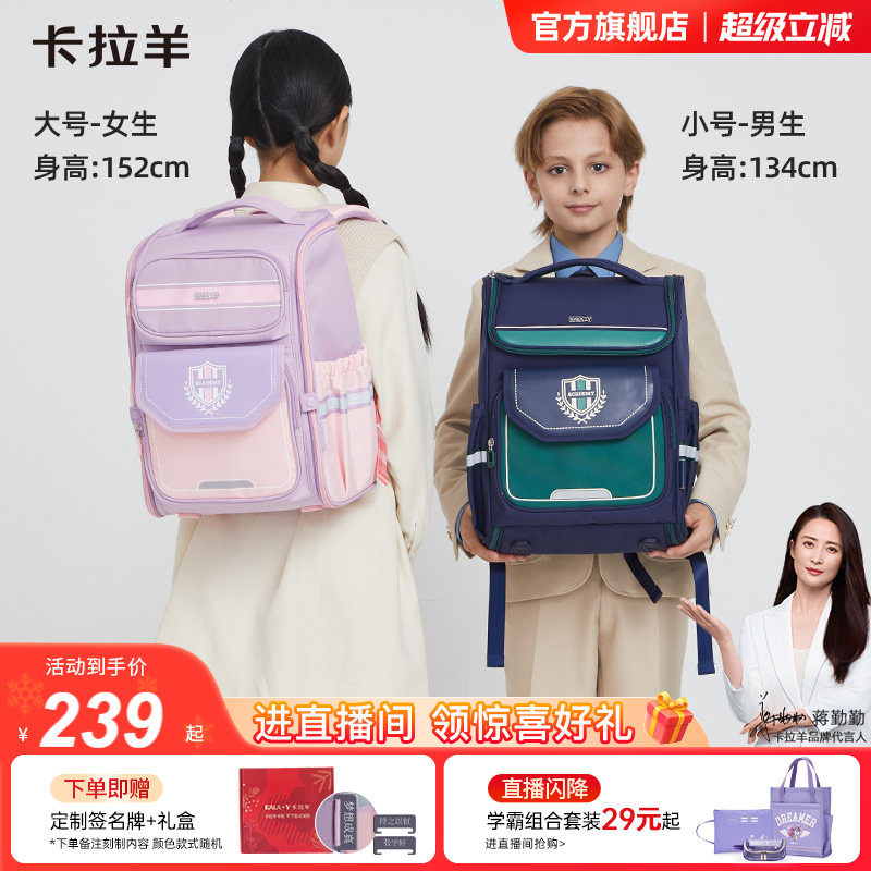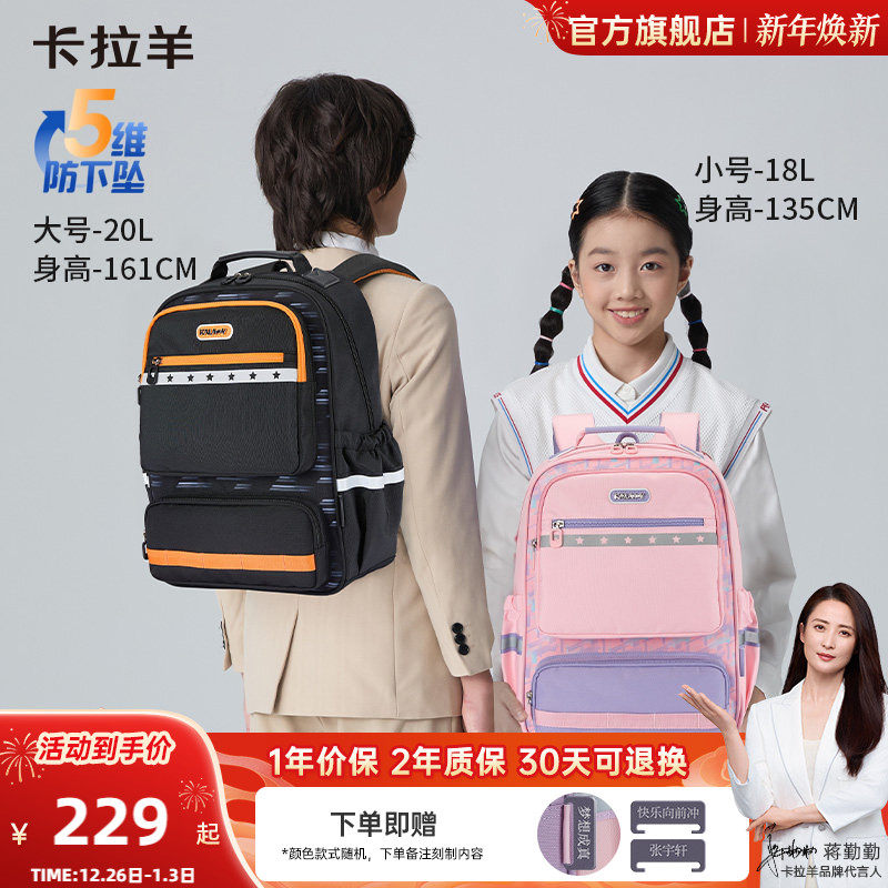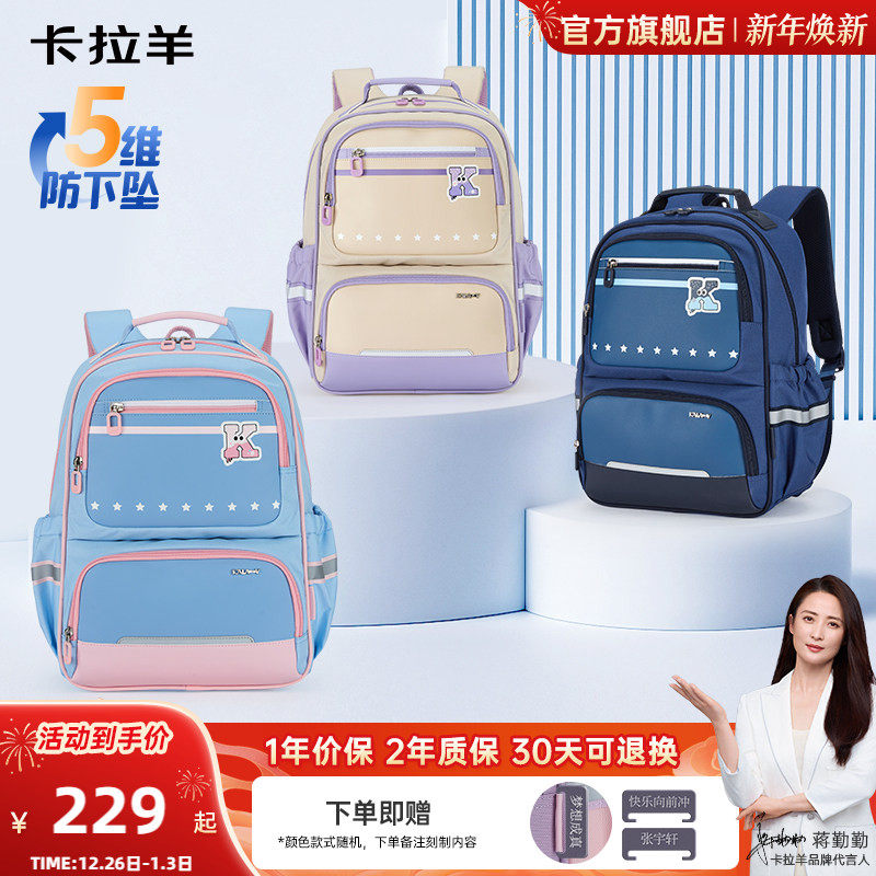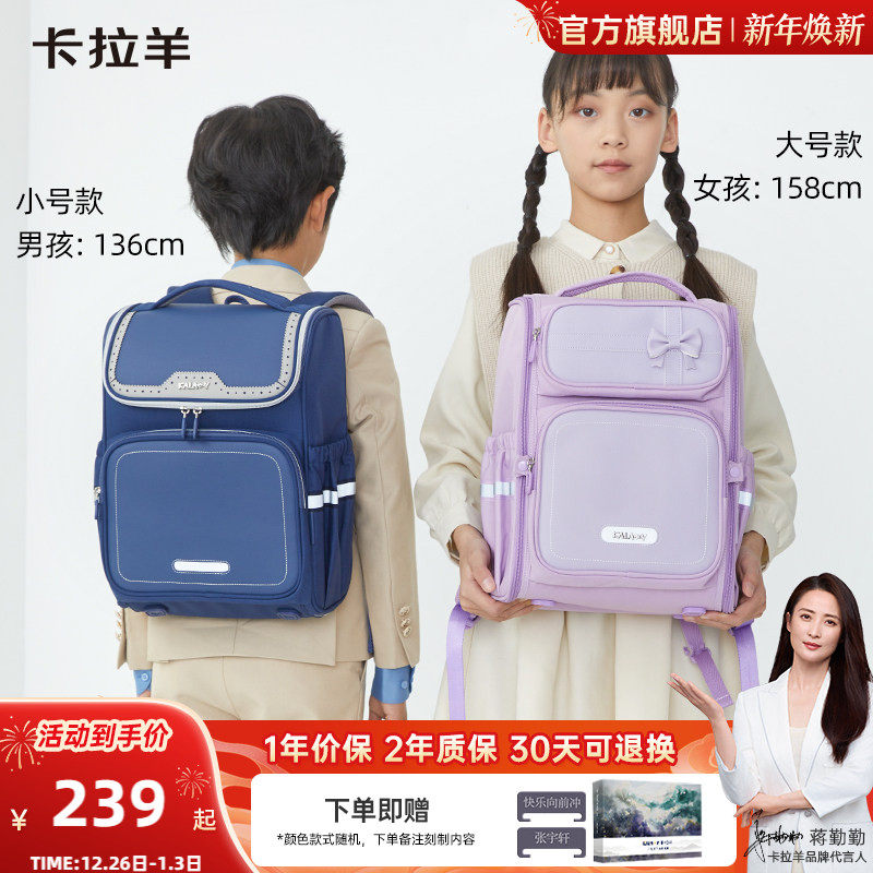【蒋勤勤代言】卡拉羊1-4-6年级小学生减负防下坠大嘴书包女新款幼升小儿童双肩包男大容量多隔层背包防泼水
